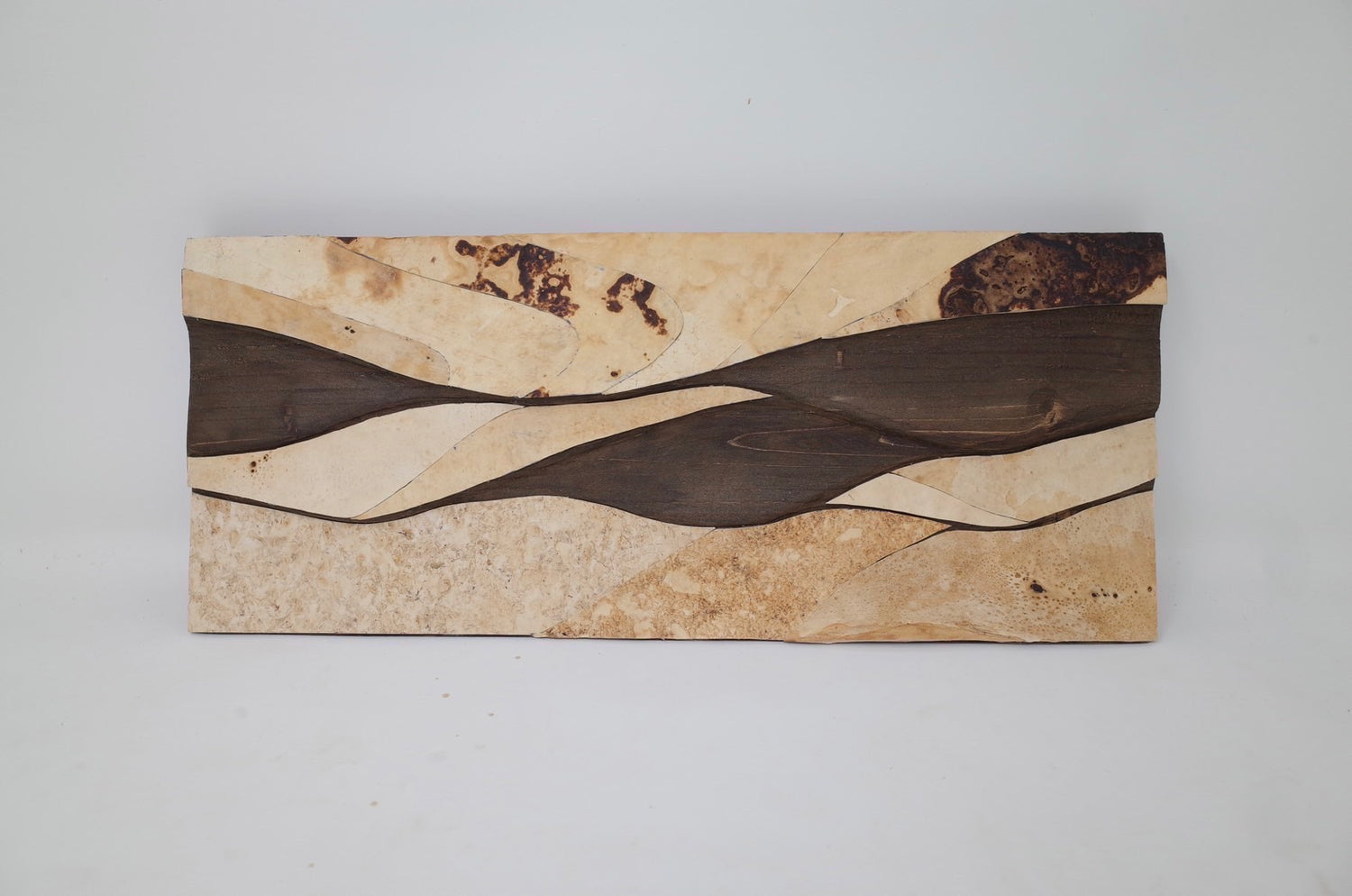 This two-dimensional piece is made from offcuts of mushroom leather, which is imbued with the life of fungi. In collaboration with an artist whose theme is animal life, a stylish art panel was created using organic materials that evoke the life of the earth. In a modern society dominated by uniform mass-produced goods, the unique texture of this panel adds space to our lives and reminds us of the diverse expressions of life that we have almost forgotten.