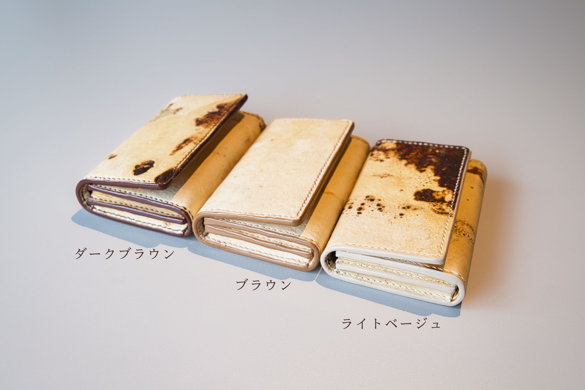 色合いは3色。ダークブラウン、ブラウン、ライトブラウン。それぞれコバ色(縁の処理の部分)縫い糸の色味が異なります。