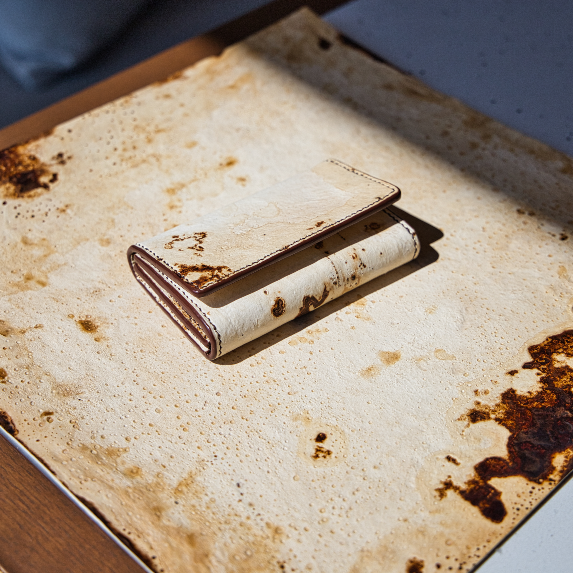 ・弊社の取り扱うマッシュルームレザーには現在撥水性はないため、水に浸けない様ご注意ください。